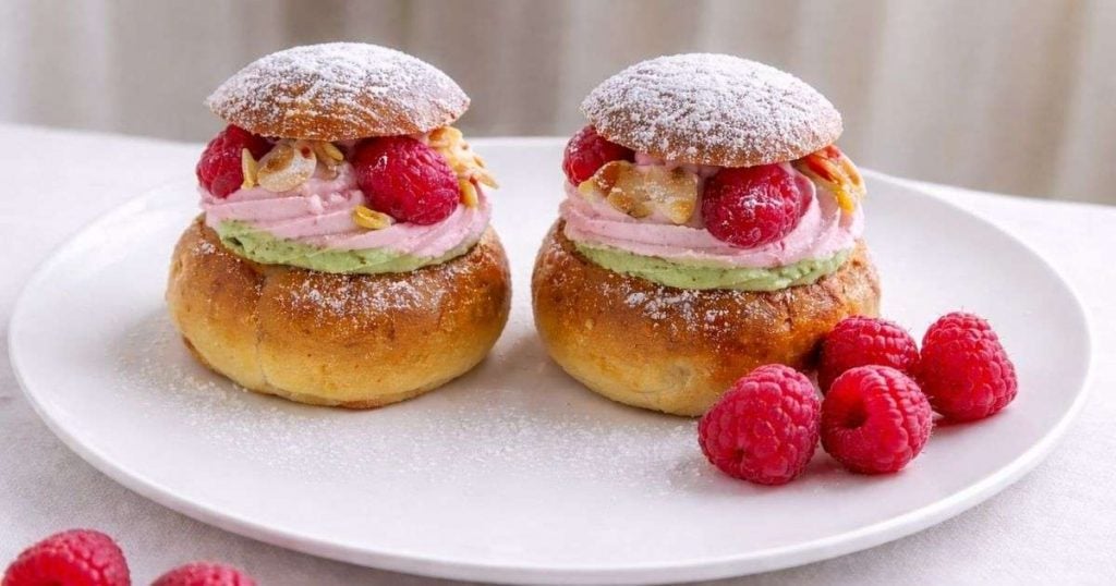 Laskiaispullat vadelma-pistaasitäytteellä
